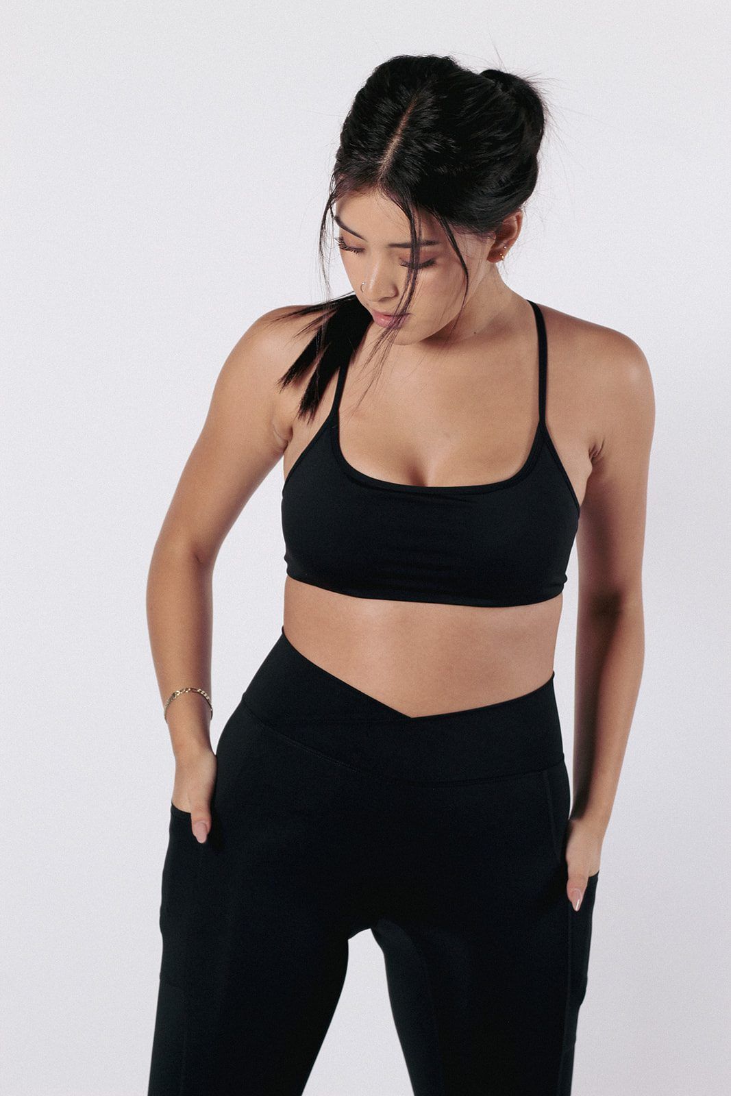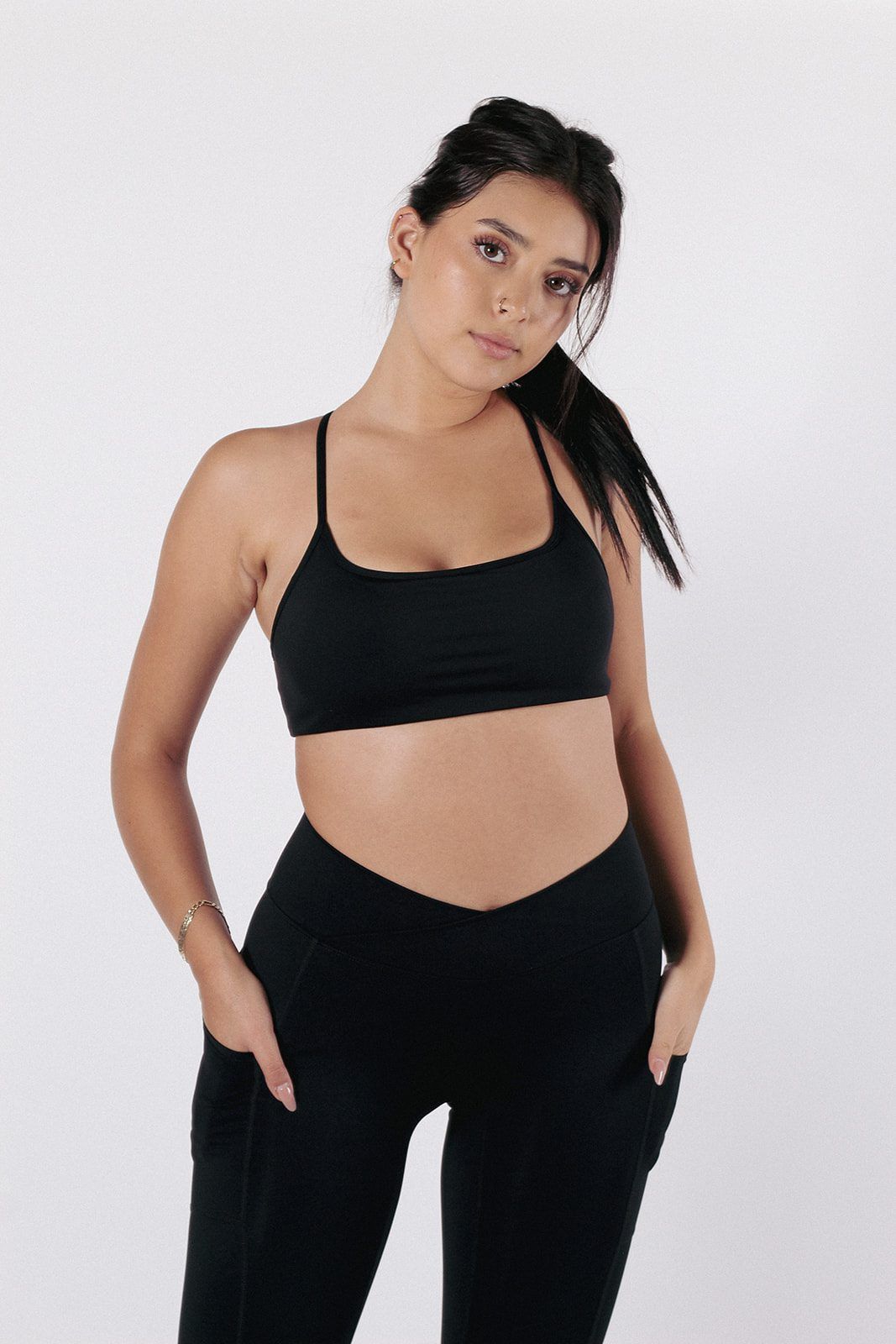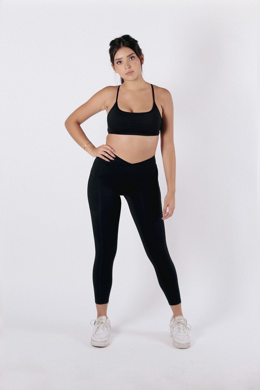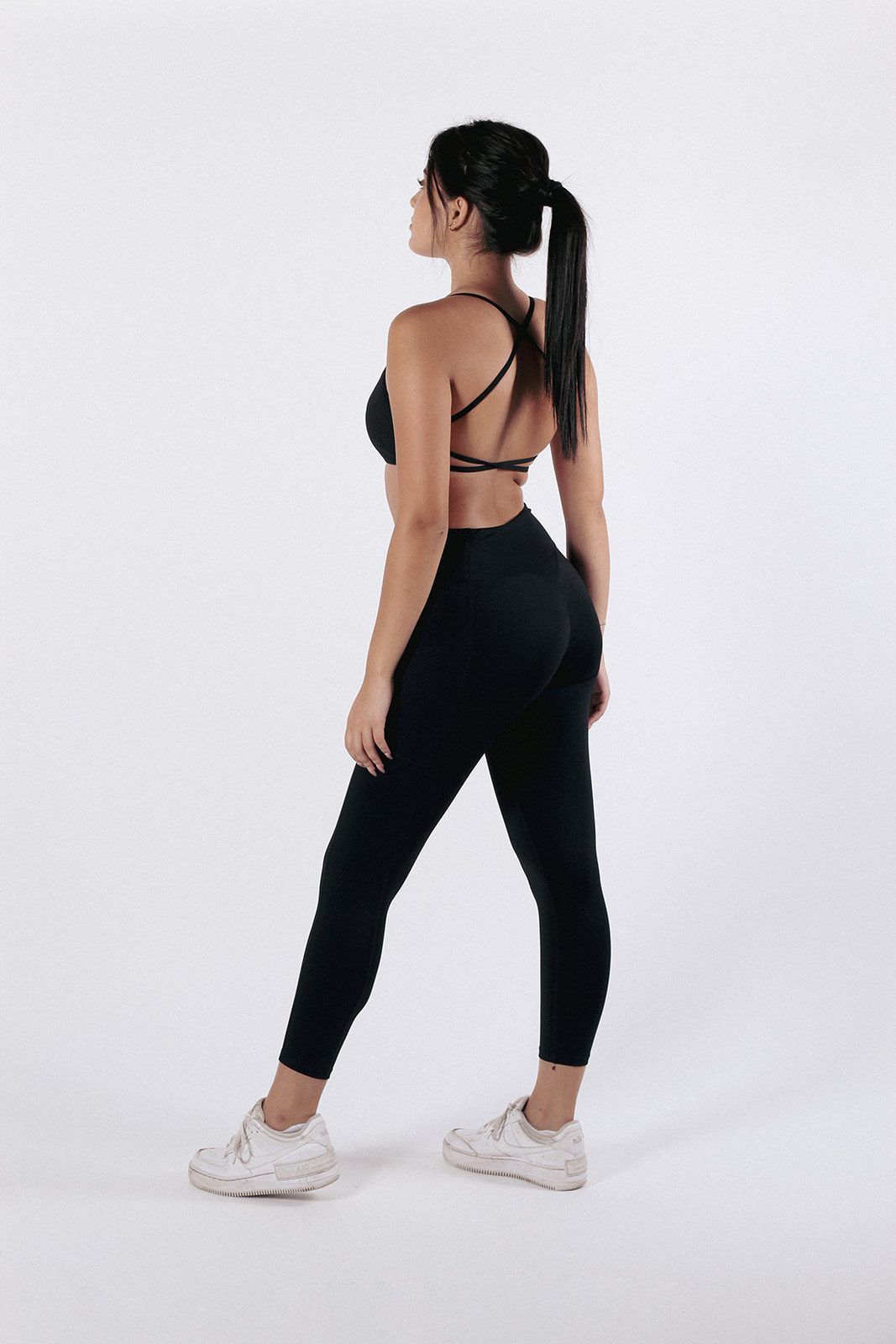 Conjunto deportivo con tela premium, que se siente como una segunda piel. Los leggings cuentan con bolsillos, corte en “V” que acentúa tu cintura y efecto push-up en la zona del glúteo.